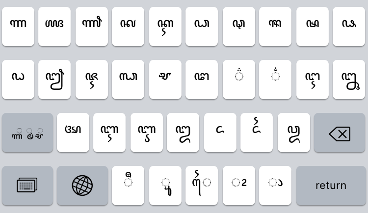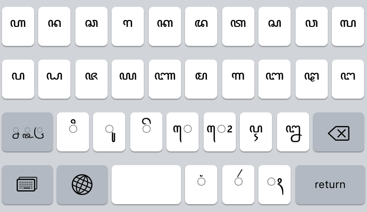 The Javanese keyboard provides all Javanese characters defined in the Unicode standard; this includes letters, marks, digits, and punctuation. The keyboard has five layers: commonly used characters, digits and punctuation, less commonly used characters, and two layers for pasangan.