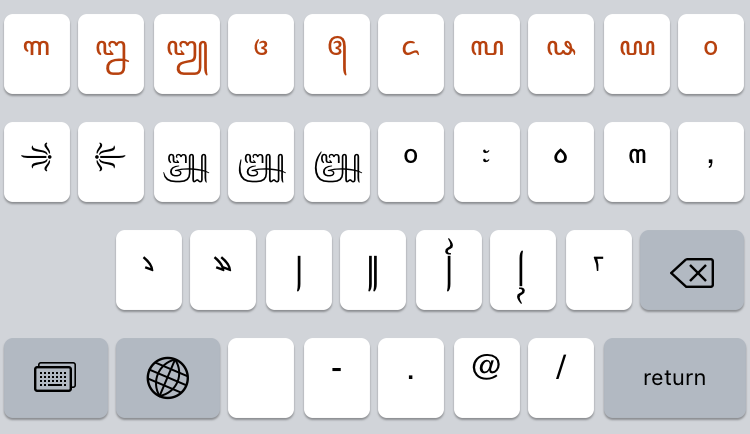 iOS comes with Noto Sans Javanese version 2, a reasonably functional Javanese font. The Aksara Jawa app contains a beautiful Javanese font named “Yogya”, which can be installed from within the app. The font is based on the Pustaka font developed by Aditya Bayu Perdana and Arif Budiarto, but has been reengineered for iOS. Here are the three fonts in comparison: